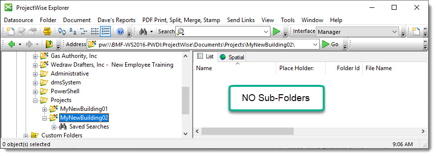 Users have been requesting methods to create new Work Areas in ProjectWise from a Template. However, they don’t always want to copy all of the available sub-folders into the new Work Area. In the past, we have come up with various ways to accomplish this. Fortunately, with the Version 1.20.6.0 release of the PWPS_DAB module, we now have the ability to create a ProjectWise Work Area from a template with only the sub-folders desired using a few of the PowerShell cmdlets we already have available.